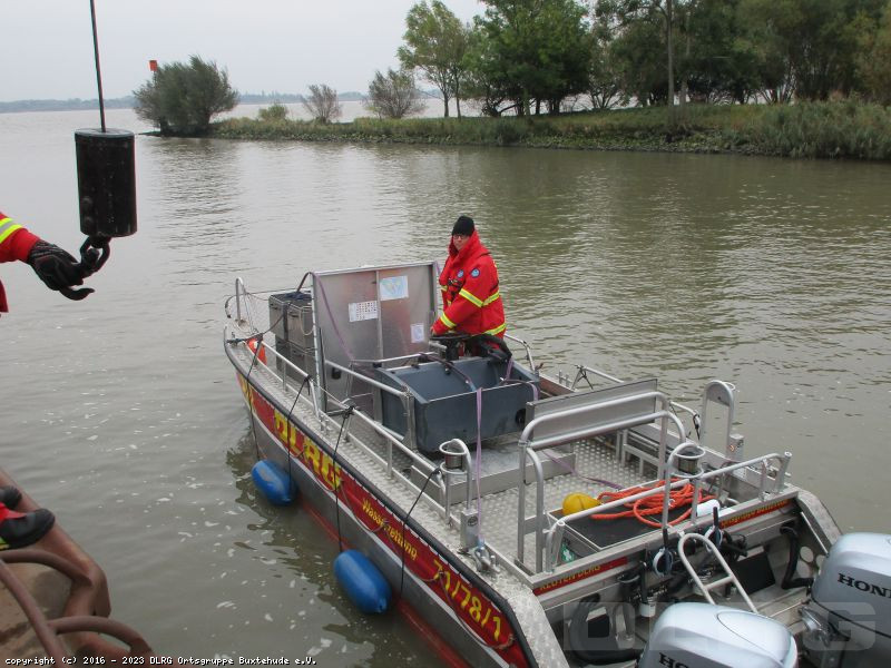 Am Samstag, den 15.10.2016, fand eine DLRG Übung des Bezirks Stade statt. Zunächst wurde sich Stader Sand versammelt, es wurde gleich auf zwei Gruppen aufgeteilt: Eine Gruppe Boote mit Sonar Geräten und eine Gruppe Boote mit Grundangeln.