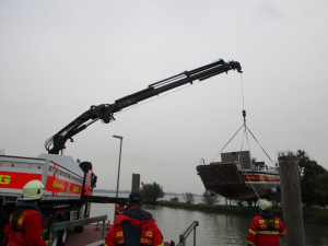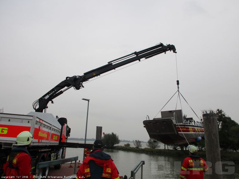 Zurück am Stader Sand wurden alle Boote gekrant, inkl Klüten! (Das Stader Tauchfahrzeug hat es leider nicht geschafft, jedoch der Horneburger Kran). Nach einer abschließenden Besprechung und Auswertung der Sonar Tracks sind wir wieder nach Buxtehude abgerückt.