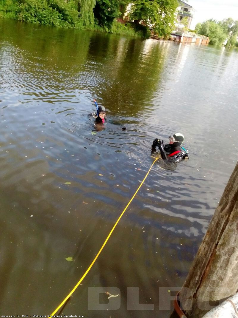 Am 9ten und am 17.07. waren zwei unserer Anwärter zu einem Übungstauchgang zusammen mit einem Lehrtaucher vor der Rettungswache in Lühe-Wisch tauchen. Das Übungsziel war hierbei sich einmal an stärker strömende Gewässer zu gewöhnen. Auch im Buxtehuder Hafen sowie in den Brunkhorstschen Wiesen waren wir an den beiden Juli Wochenenden zum Übungstauchen im Wasser. Unter anderem auch für einen Tauchgang bei Nacht.