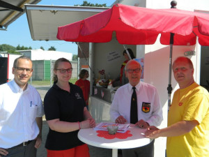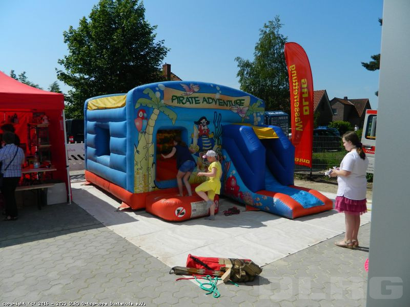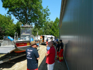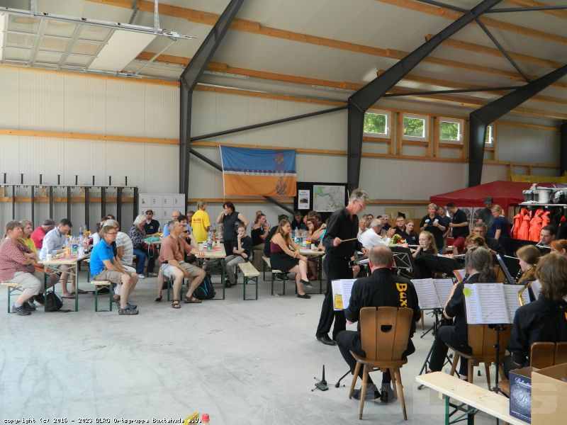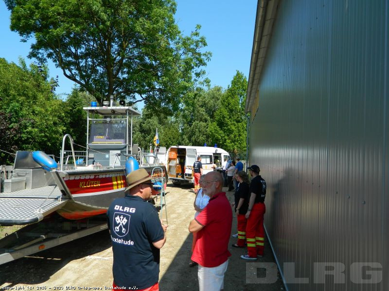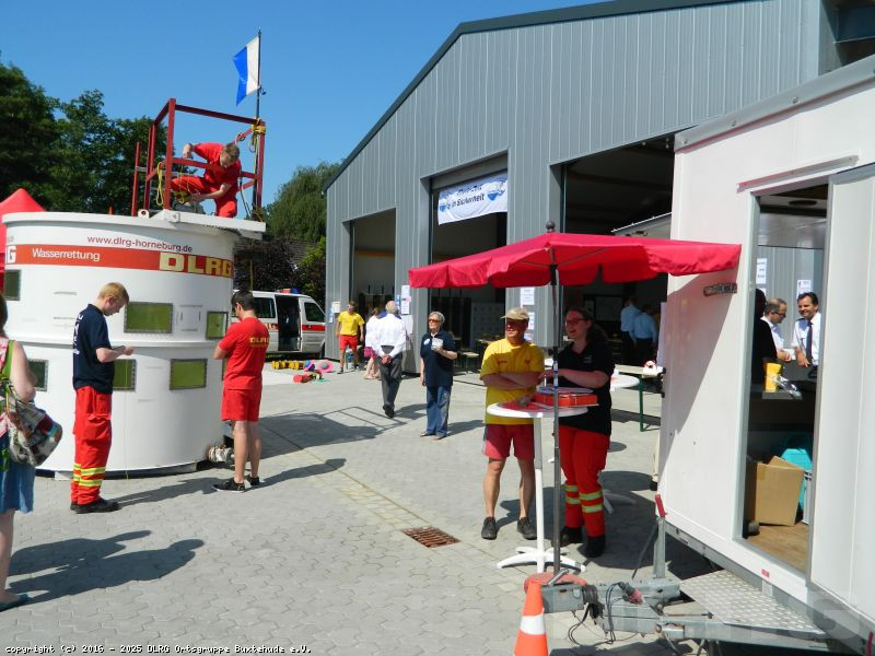 Am 04. Juni 2016 haben wir unser neues Gerätehaus mit einem Tag der offenen Tür offiziell eingeweiht. Viele Interessierte warfen einen Blick in die neue Halle, Rettungstaucher konnten durch die Fenster des Tauchturms beobachtet werden und auch die Einsatzfahrzeuge und -boote durften genauer unter die Lupe genommen werden. Für die jüngeren Besucher wurde durch die DLRG Jugend von verschiedenen Spielen bis zu einer Hüpfburg ein gemischtes Programm angeboten. Erwachsene konnten bei einer Tombola zu Gunsten des Neubaus ihr Glück versuchen. Am Nachmittag sorgte das Stadtorchester für musikalische Untermalung.