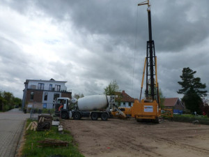 Nachdem am 28.04.2015 der 1. Spatenstich erfolgte, sind in der Zwischenzeit die Arbeiten für die notwendige Pfahlgründung abgeschlossen. Nun können weitere Tiefbauarbeiten erfolgen.