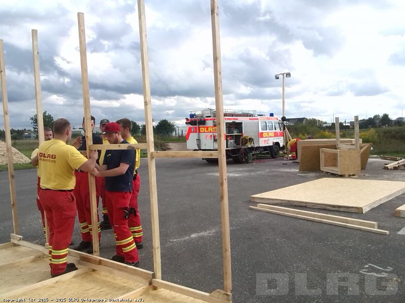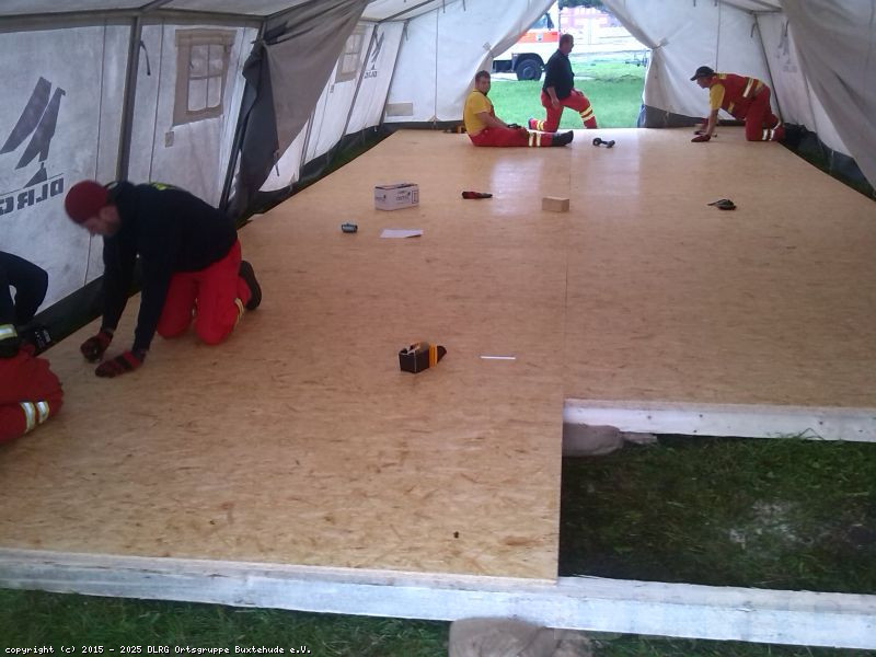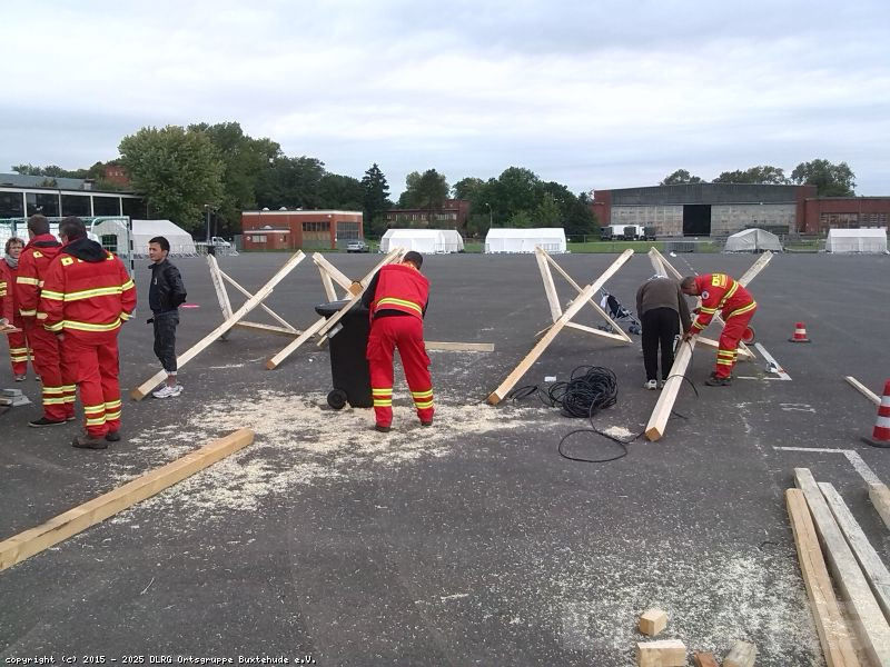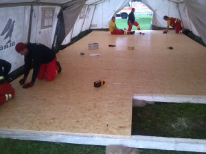 Am letzten Sonntag ging es los in Richtung Lüneburg. Zunächst wurden die Helfer in die Registrierungssoftware eingewiesen und erhielten eine kleinen Einblick in die Sitten und Gebräuche der Flüchtlinge. Im Verlauf der weiteren Tage wurde nun weitere Zelte aufgebaut, mit Holzböden versehen und mit Sandsäcken abgedichtet, zum Teil wurden die Eingänge sogar überdacht. Des Weiteren wurde eine Stromversorgung aufgebaut, damit eine Beleuchtung der wichtigsten Bereiche gewährleistet ist. Auch bei der Essensausgabe und der Organisation der Küche waren unsere Helfer beteiligt, sowie bei der Materialversorgung, damit das Material für die vielen Holzkonstruktionen nicht ausgeht.