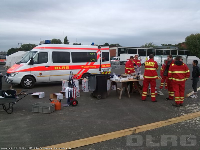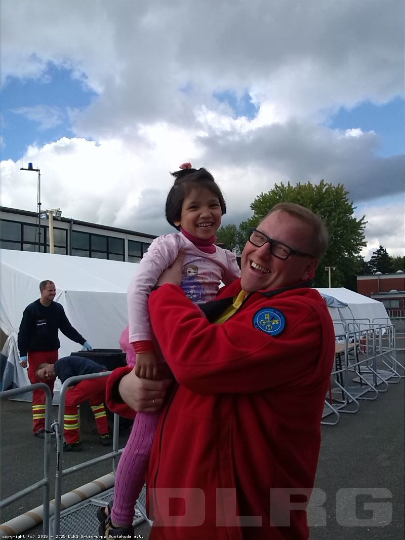 Zusammen mit 11 anderen DLRG-Helferinnen und -Helfer aus dem Landkreis Stade unterstützten drei unserer Mitglieder die Erstaufnahmeeinrichtung für Flüchtlinge in Lüneburg.
