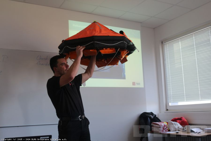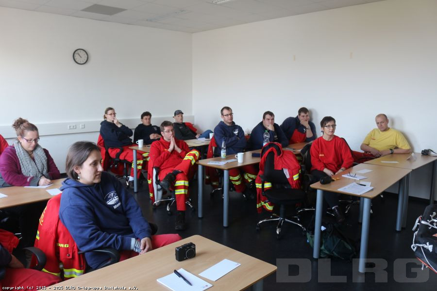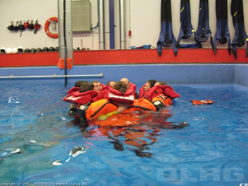 Am Samstag, dem 14. Februar, fuhren die Ausbilder der Ortsgruppe Buxtehude nach Bremerhaven zu einer Lehrscheinfortbildung des Bezirkes Stade bei FALCK SAFETY SERVICES, um im Bereich der Wasserrettung etwas Neues auszuprobieren und zu üben.