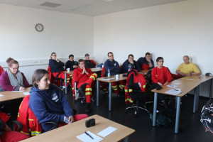 Der Tag begann mit einer Theorieeinheit, in der unter anderem die Aus- und Unterkühlung im medizinischen Bereich angesprochen wurde. Nachdem die Theorie besprrochen war, sollten verschiedenen Katastrophen-Szenarien unter Anleitung der beiden Fachkräfte, welche auch in der DLRG tätig sind, durchgespielt werden. Die Traningshalle bot dabei eine vielfältige Auswahl an Technik, wie zum Beispiel Abdunklung, Windrotoren, Wasserschläuchen, einem Stroboskop, einer Wellenanlage und Lautsprechern, wodurch fast realistische Katastrophensituationen simuliert werden konnnten.