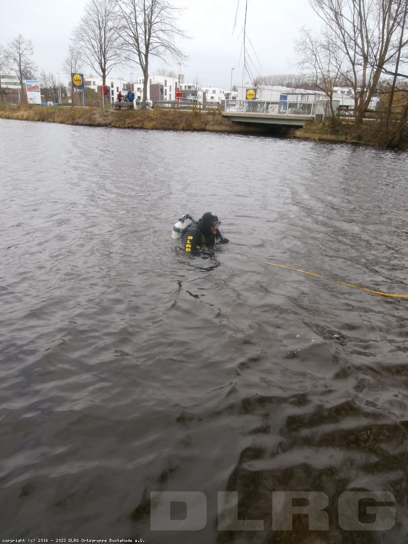 Trotz der Tatsache dass die Übung am ersten Tag nach Weihnachten stattfand, war sie mit sechs Einsatzkräften, davon drei Einsatztaucher und ein Drochtersener Gast, recht gut besucht.